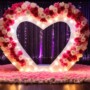 Photo Luxury wedding venue, heart-shaped photo booth centerpiece, soft fairy lights, timeless romance